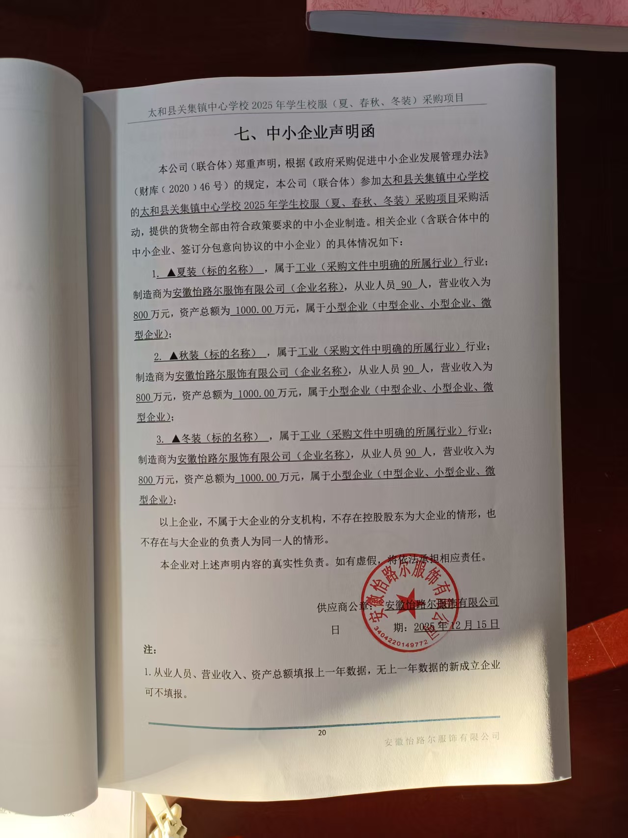 二、项目名称:太和县关集镇中心学校2025年学生校服(夏、春秋、冬装)采购项目